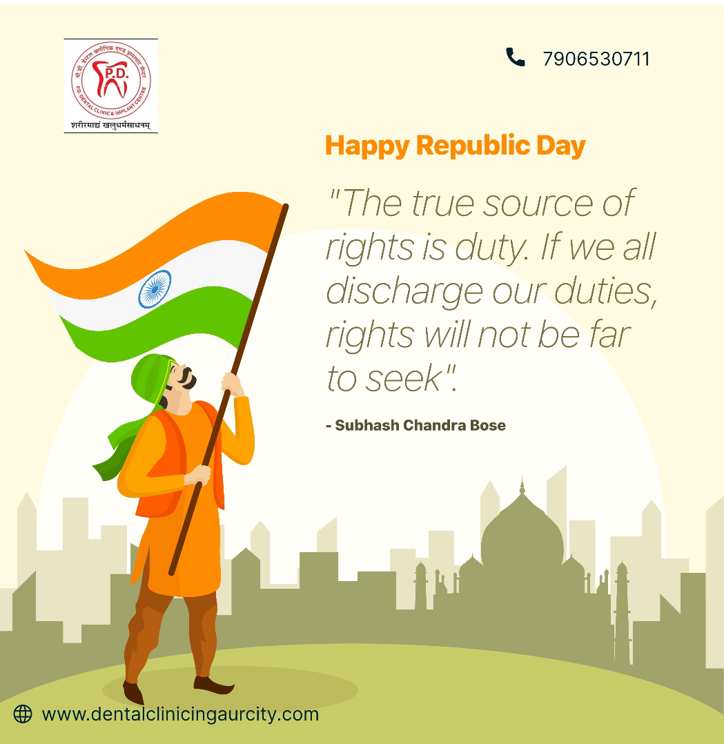 🌟 Republic Day is a celebration of our rights, our heritage, and our unity as a nation. 🇮🇳 Let’s pledge to keep the tricolor flying high. Jai Hind!HappyRepublicDay PD Dental clinic and implant centre Dr Navratna singh galaxy shoppe gaur city 2 greater Noida west